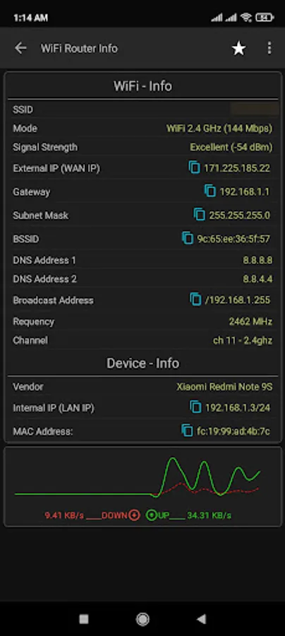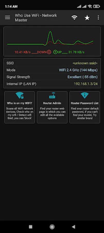 ALL Information of your WiFi network and connected devices. Helps to setup a router.