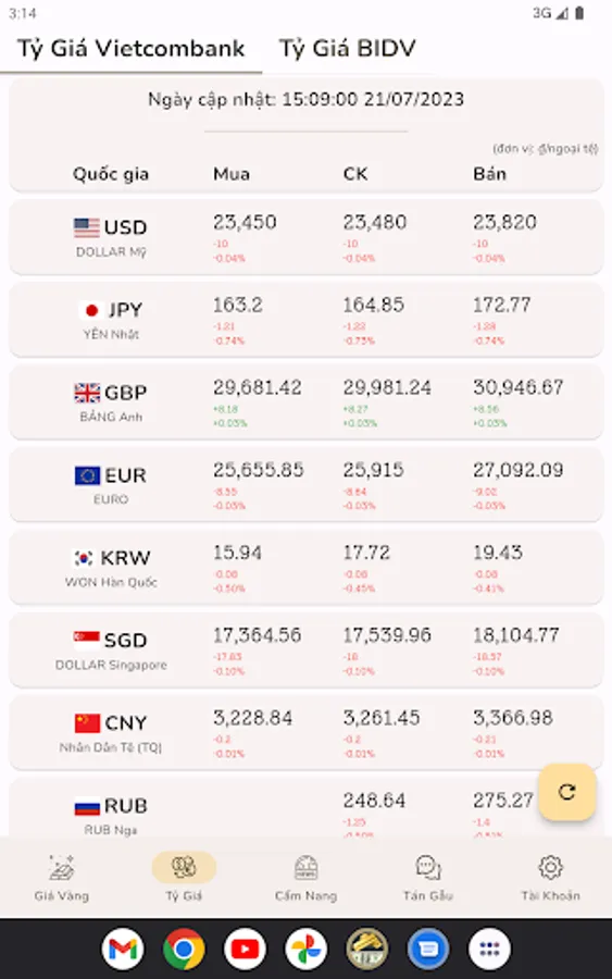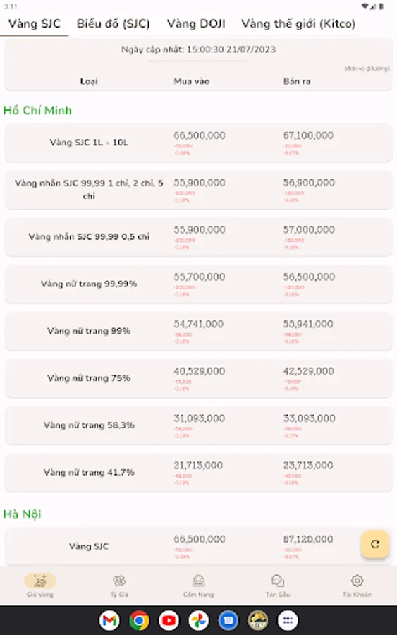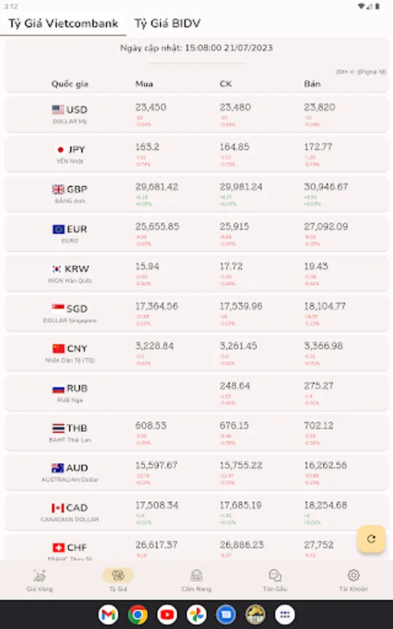 The best application for viewing gold prices - foreign exchange rates, updated data from SJC and Vietcombank on your Android phone!