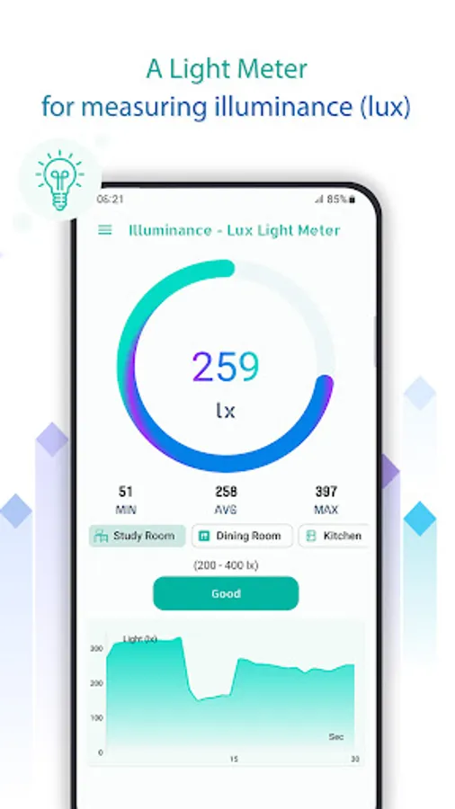 - Recommend the best light value in lux for each room type