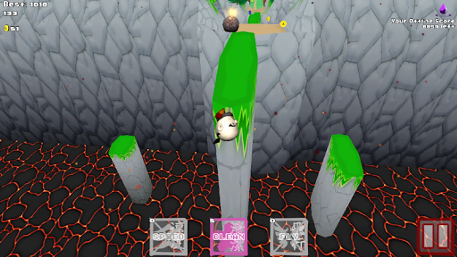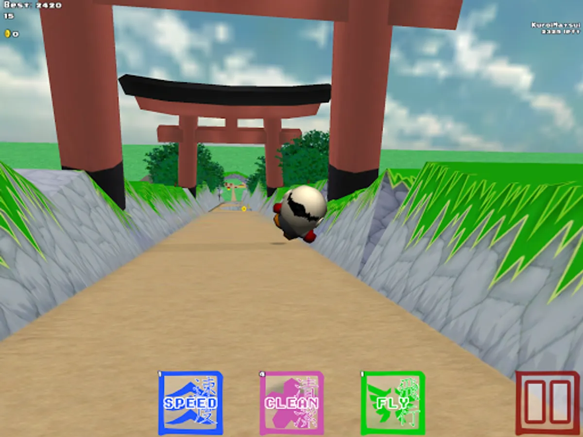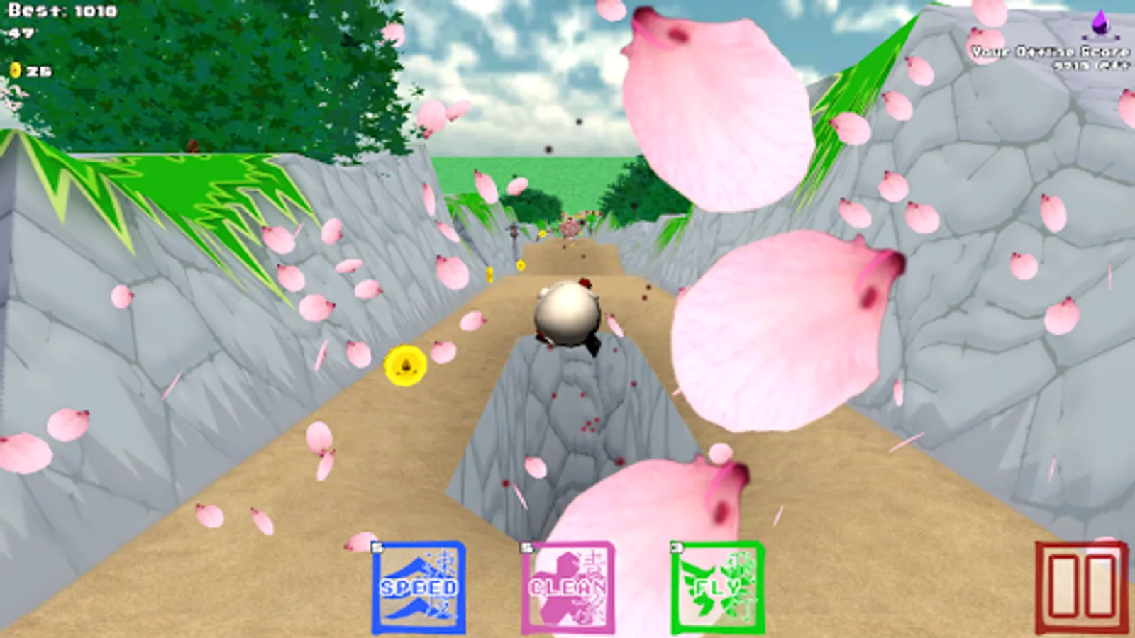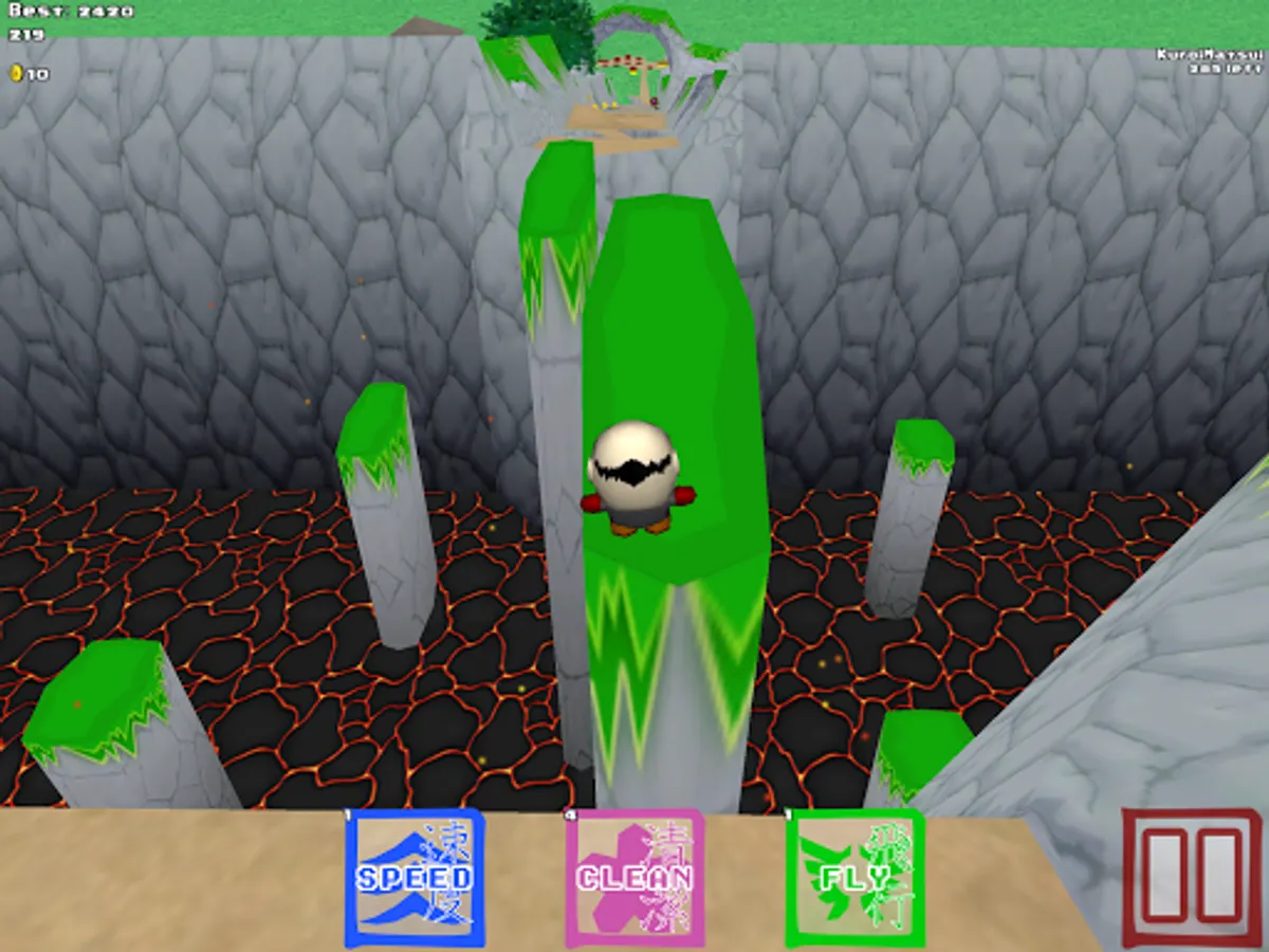 Roll around in a randomly generated world, from the environment to the trees and the size and position of the lava-rocks and everything else! You can use the in-game coins to buy items to speed up, clean the screen from leaves or even fly!