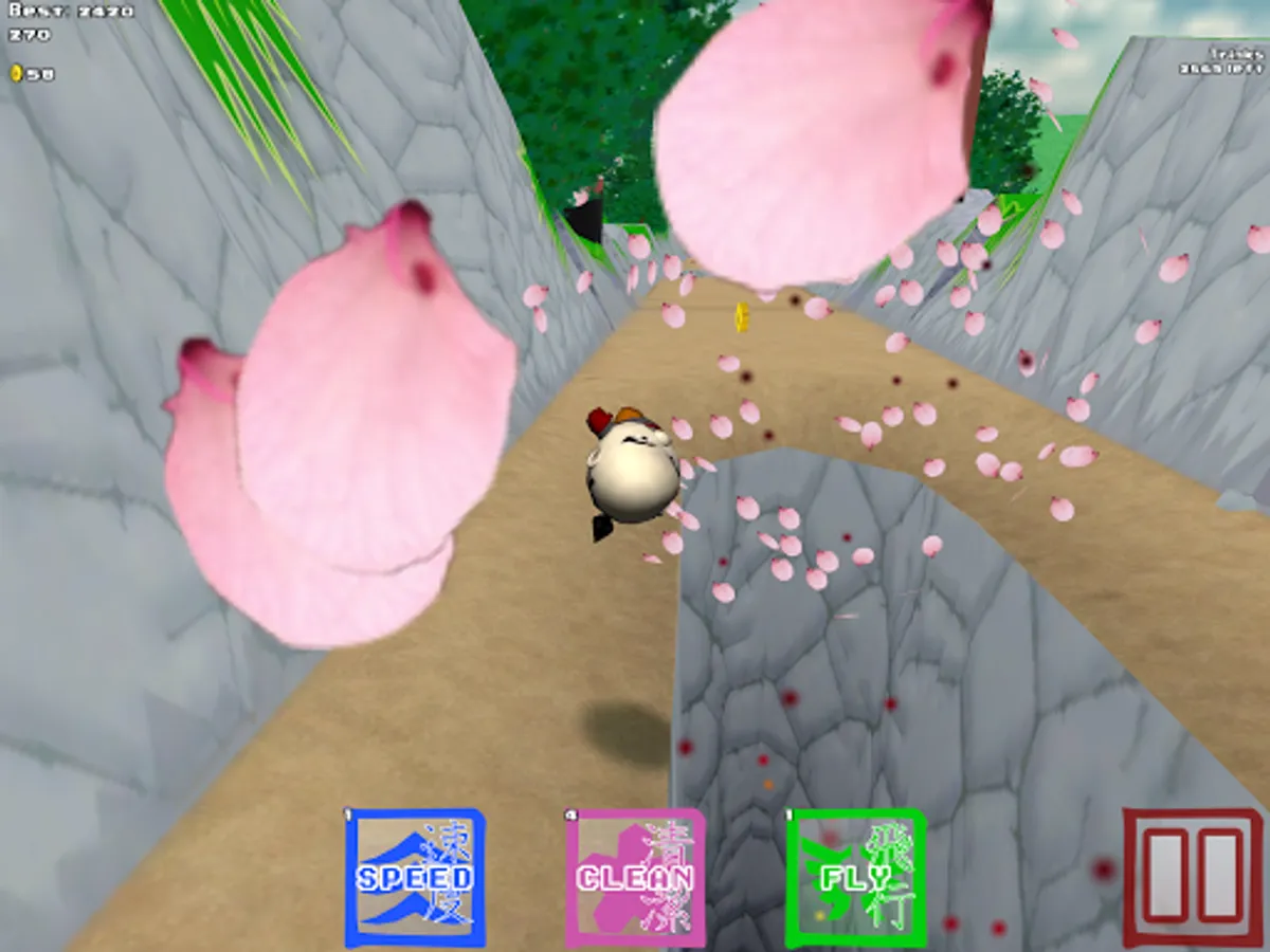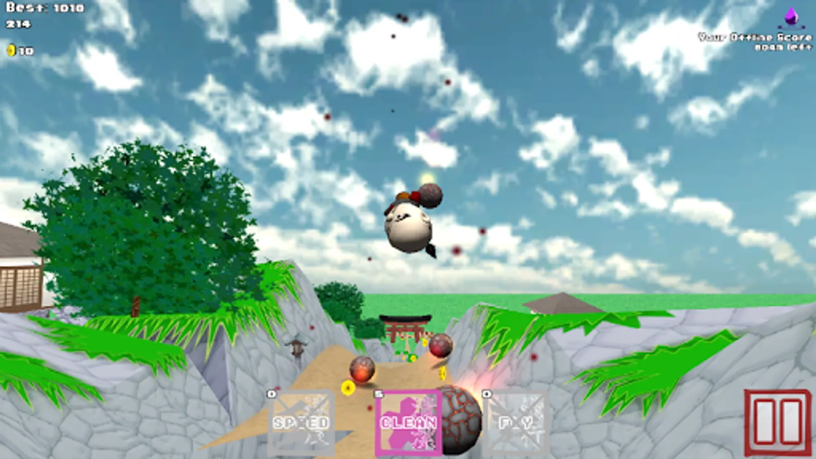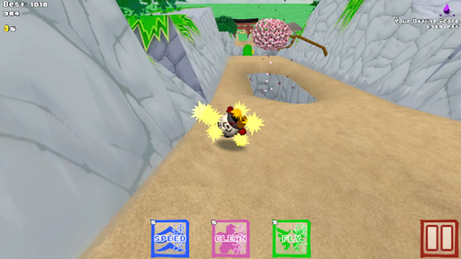 Roll around in a randomly generated world, from the environment to the trees and the size and position of the lava-rocks and everything else! You can use the in-game coins to buy items to speed up, clean the screen from leaves or even fly!