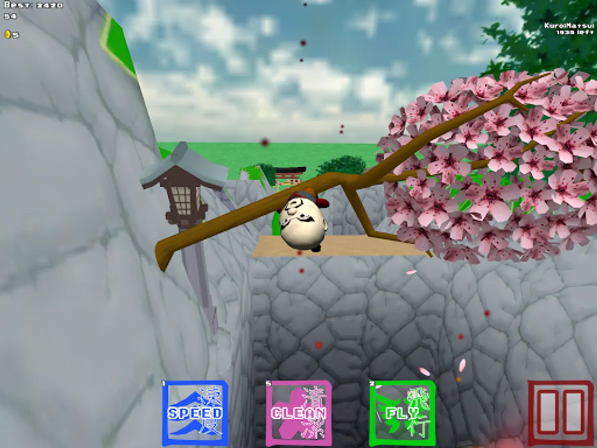 How far can you roll off of a volcano while dodging lava-rocks, -rivers, high cliffs and cherry blossom leaves which block your view?!