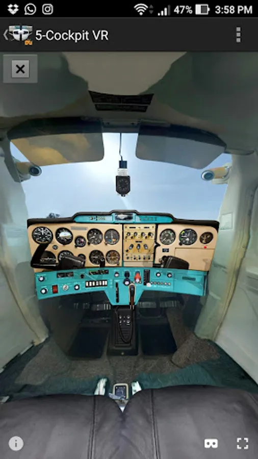 Swipe through technical information of Cessna 150 aircraft and immerse in its Virtual Cockpit, familiarizing yourself with the cabin and instruments.