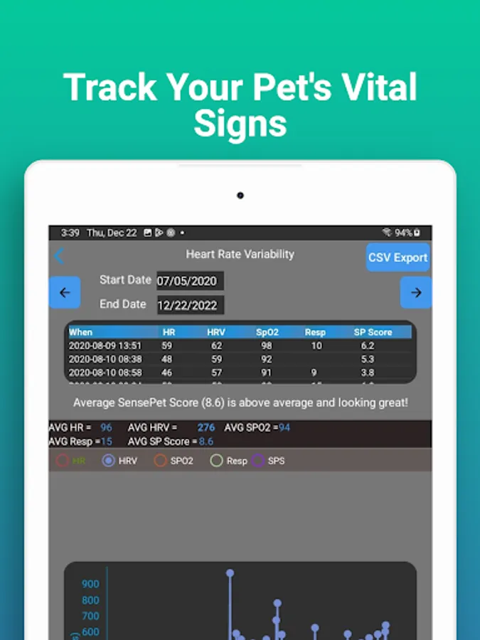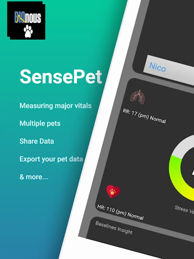 The SensePet is a pet health monitoring system consisting of both easy-to-use hardware as well as state-of-the-art, AI-based companion software and an app that allows the pet owner to track their pet’s health over time. The SensePet consists of a SensePet Clip and this App that connects via Bluetooth to the SensePet Clip for measuring your pet’s heart rate, blood oxygen, respiration rate, and heart rate variability (HRV).