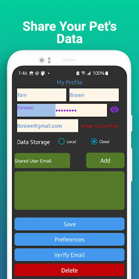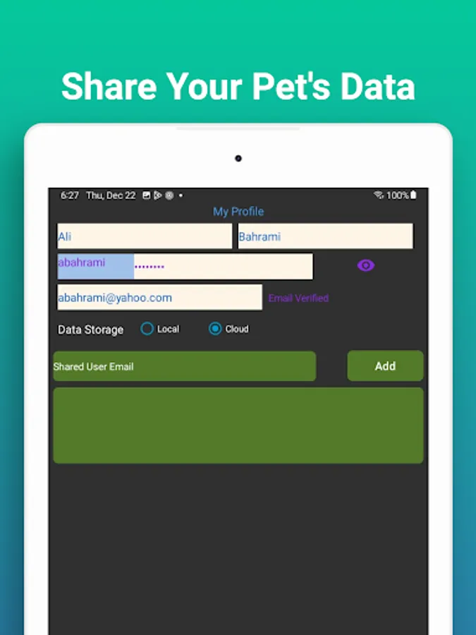 · Data can be shared among users such as between family members, Neighbors, or Vets.