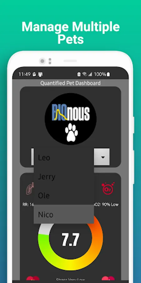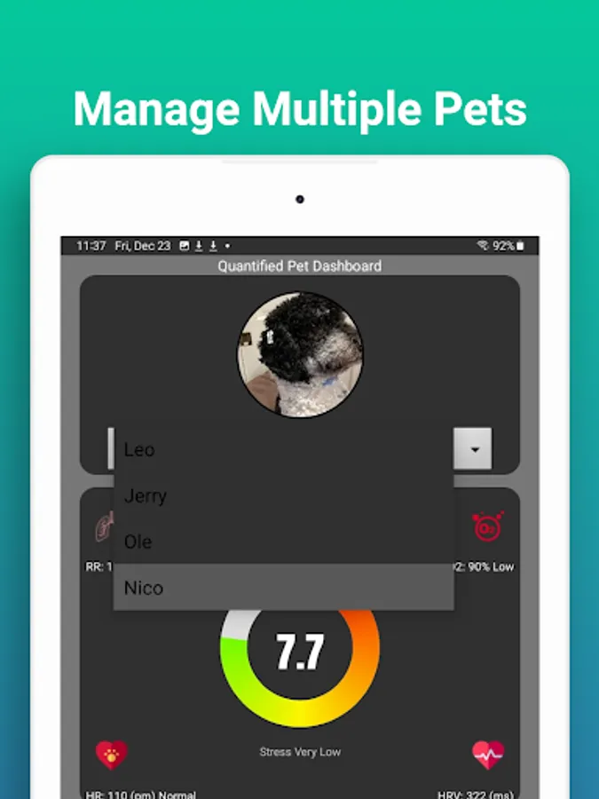 · Quantified Pet Dashboard provides comprehensive information about your pet's vitals and wellness.