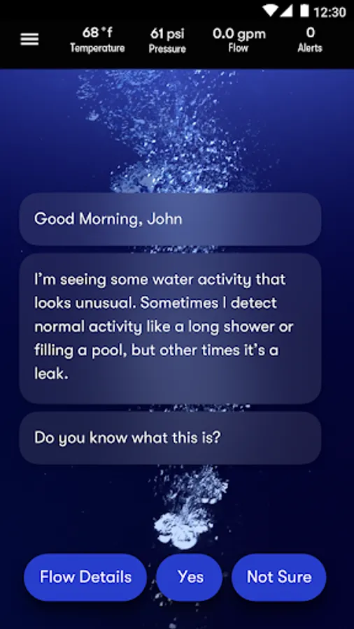 Phyn constantly monitors your home for leaks and potentially harmful changes in pressure and temperature. As soon as an issue is detected, Phyn sends you SMS and push notifications to tell you what is happening and gives you the power to turn your water off to mitigate water damage.
