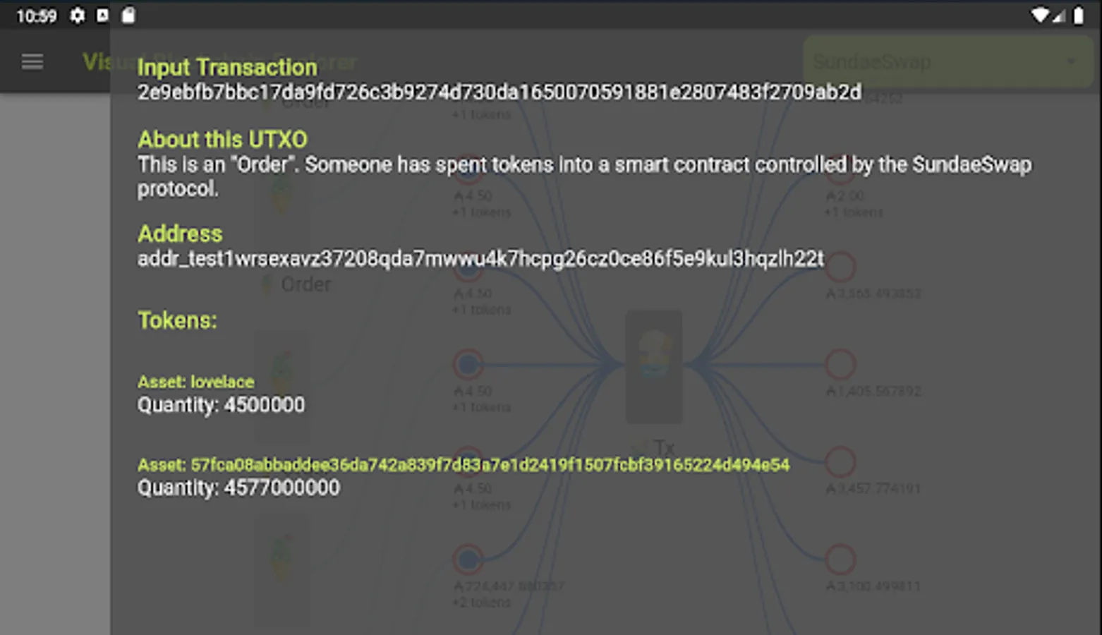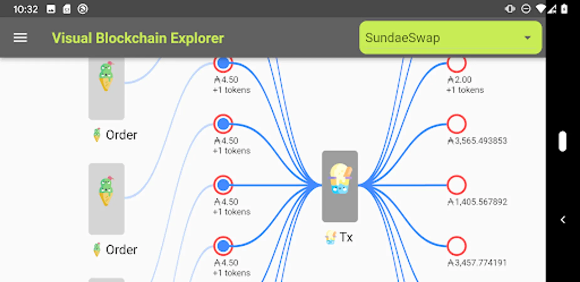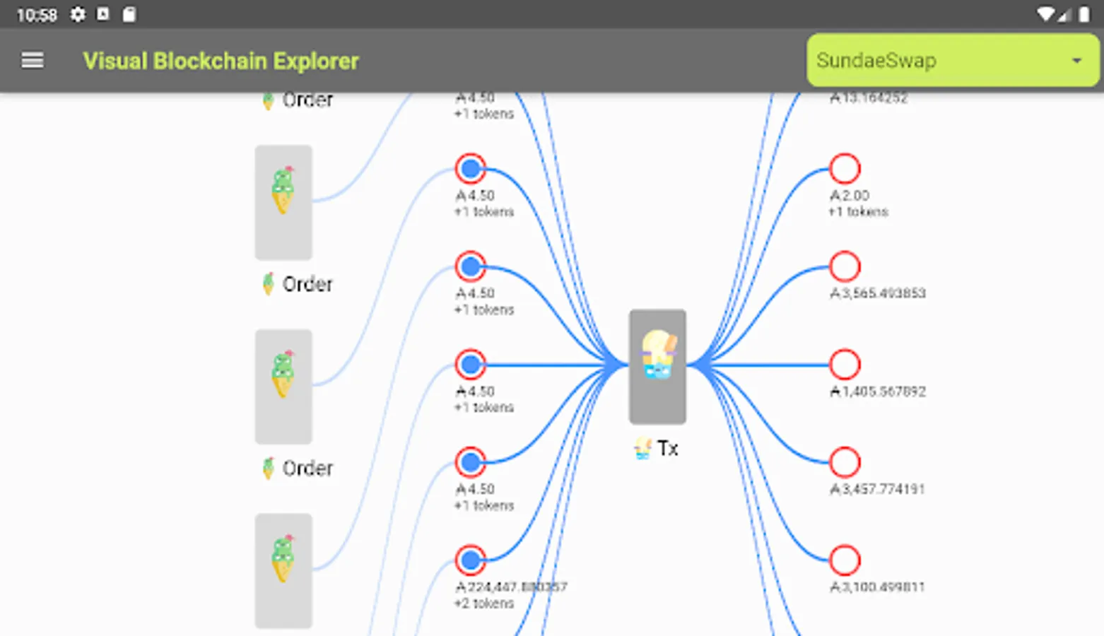 This prototype application can be used to explore Cardano testnet transaction run by MinSwap, Occam, and SundaeSwap during their testing phase. You can top on transactions to move up the blockchain, and tap on UTXOs to get more information about that UTXO and the tokens within.