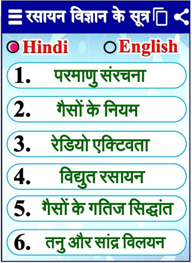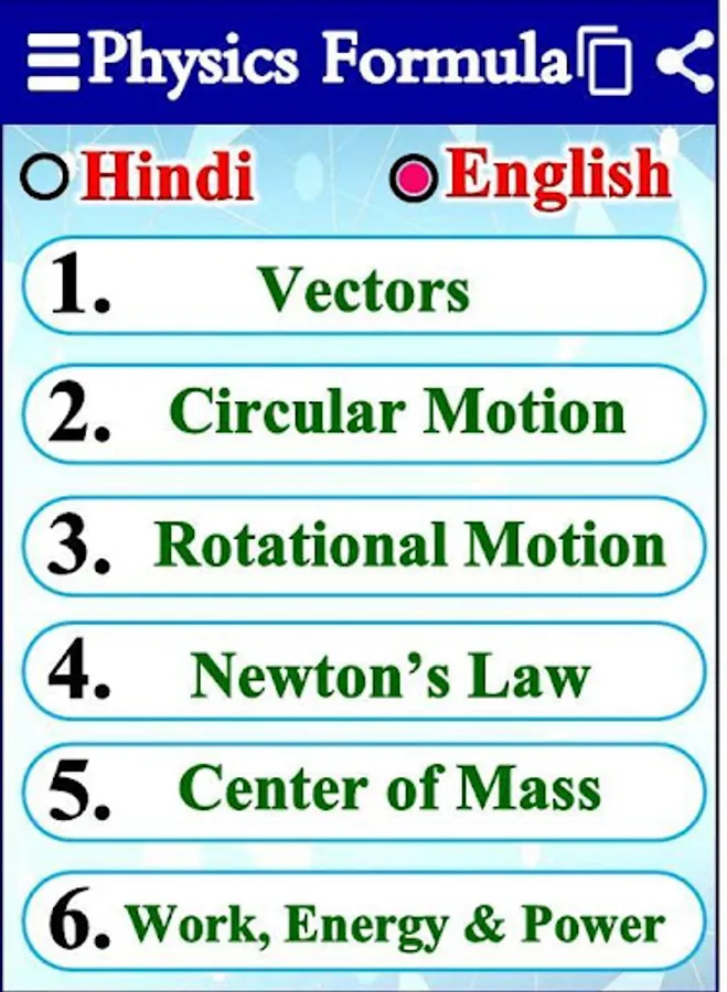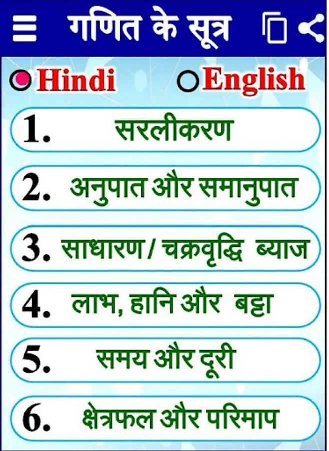 This app provides you with all basic Formulas in Hindi. Here you can find all the formulas of Mathematics, Physics, and Chemistry. It's very convenient for all students. With this app, you can save time because of all-important formulas in one place for better understanding. You can use this app online as well as offline.