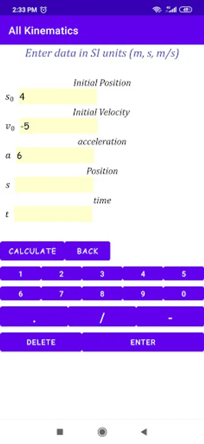 By entering the initial position, the velocity and the acceleration can be obtained;