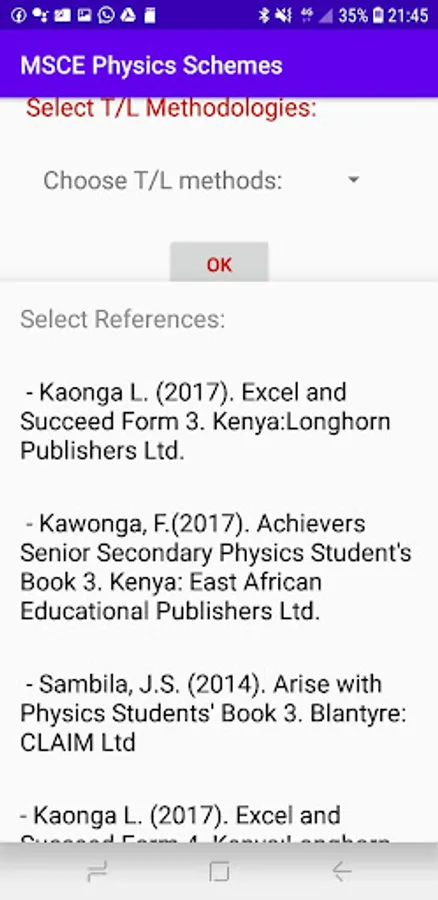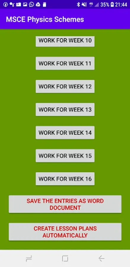 This application is aiming at helping Malawian teachers to create MSCE Physics Schemes and Records of Work with ease at secondary school level. They do not need a pen or a paper to write this. All they need is simply to select relevant work for the week. The rest is done automatically.
