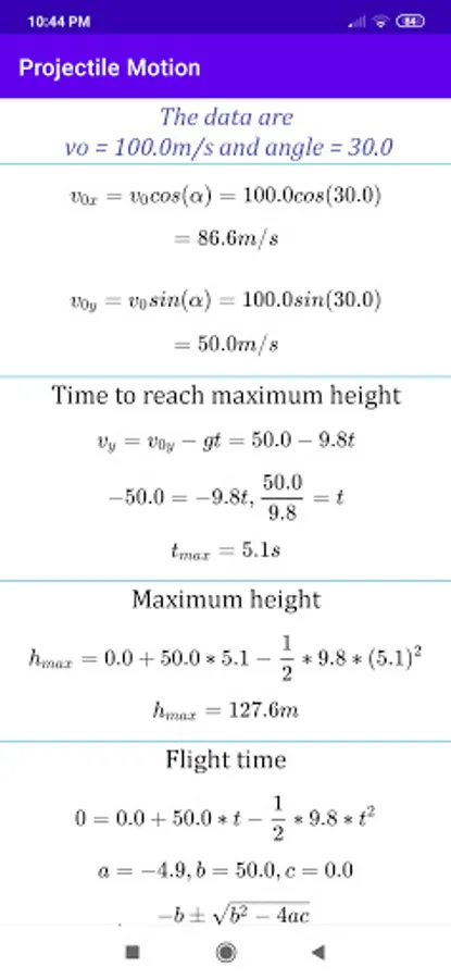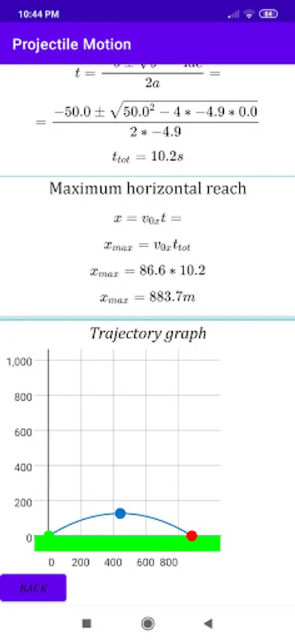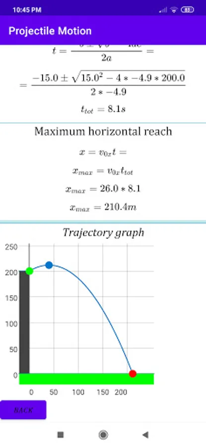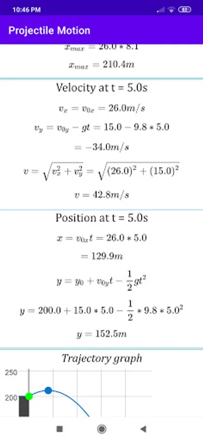 You also have a useful graph to visualize the trajectory of the projectile.
