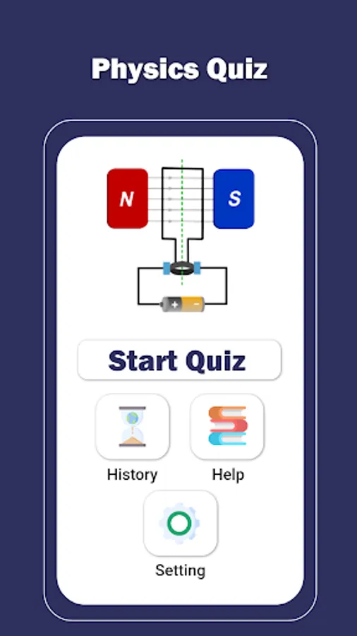 2. The interface of Physics Quiz Test: Trivia Quiz contains the get started tab, history tab, and settings tab.