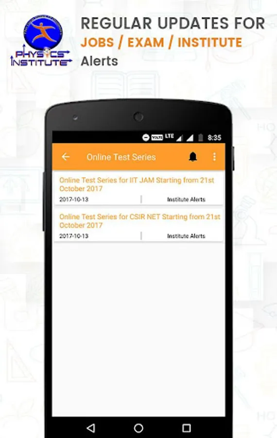 In Physics Institute Jaipur Free Mobile android App users will get notifications for regular institute alerts, job alerts, exam alerts, Latest news and events etc. Physics Insitute App also provides following features for users: