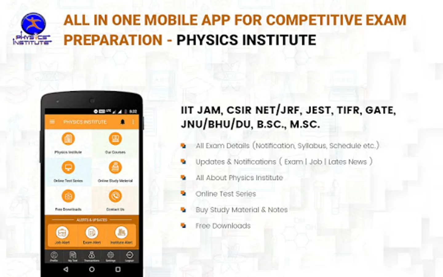 Physics Institute App provides study material like e Notes, Class notes, PDF, Video Classes, Previous year papers, Mock Test with solutions etc.