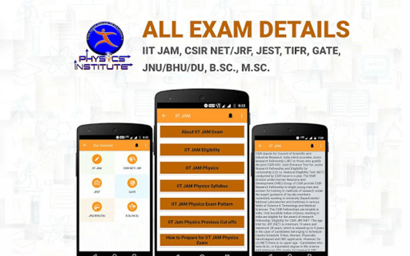 Physics Institute provides complete details about exams, including latest updated exams details like Exam pattern, Eligibility criteria, Notification dates, Subject wise detailed syllabus, Cut off, Paper Analysis for GATE, IIT Jam, CSIR Net & other physics entrance exams.