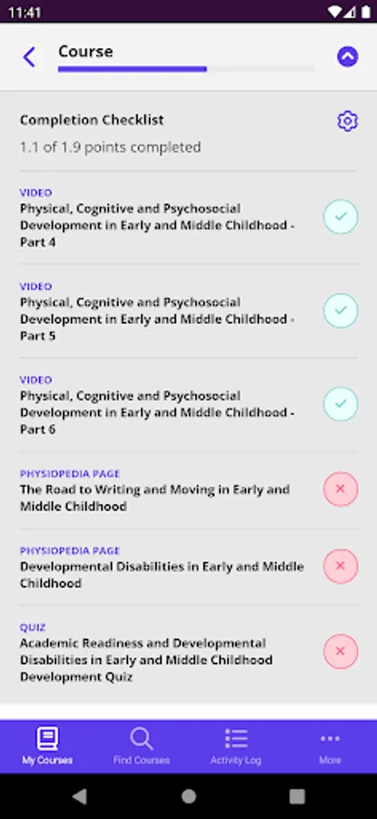 When doing the Plus courses, you will have access to videos, articles, quizzes and a wide range of additional resources, which you can track by accessing your activity log. All the activities you complete on the app will be synchronised with your professional portfolio on the Plus website and vice versa.