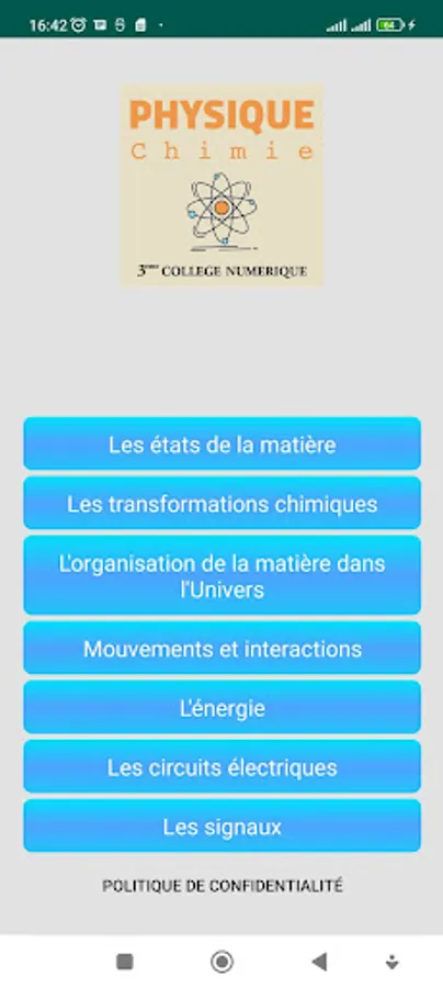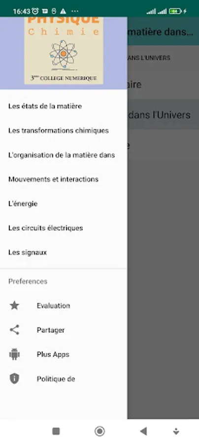 To perform in 3rd grade Physics and Chemistry, this application supports you in your revisions. Do you want to improve in 3e Physics-Chemistry?