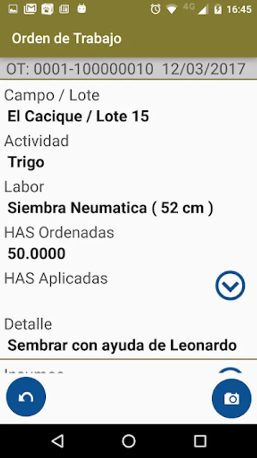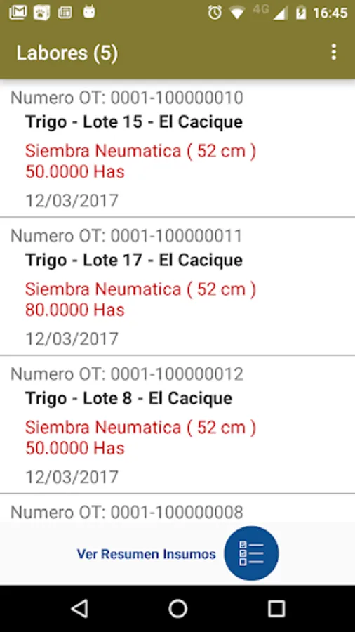 This application has the following functionality from a cell phone can receive work orders generated in desk within the Physis Management application Agro, then the APP can be processed by changing the variables relating to inputs, labor and machinery actually carried out, the operator in the field, you can modify and add data and comments and then send them as working parts to Physis Agro Management application on the desktop
