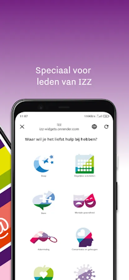 The IZZ Move your Better app is especially for IZZ members (aged 18 and older). For registering with the app and more information: https://izz.nl/ledenvoordeel/izz-beweeg-je-beter