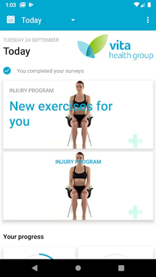 The Vita Health app lets you download your Vita Health home exercise program to your smartphone or tablet.