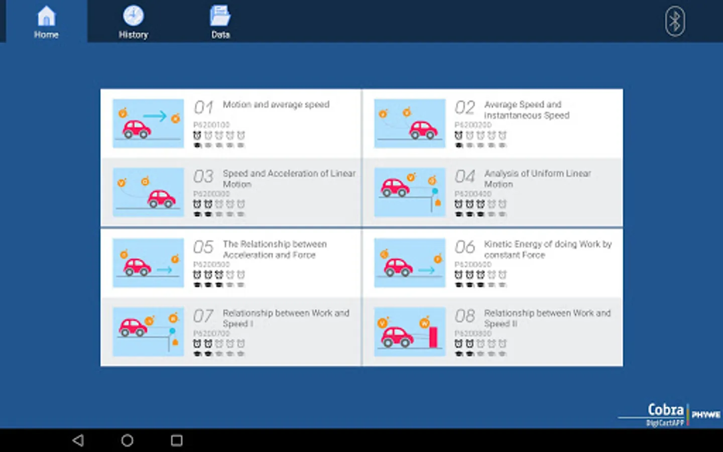 Just connect a PHYWE Cobra DigiCart using Bluetooth and experience 12 experiments from basic to expert level: