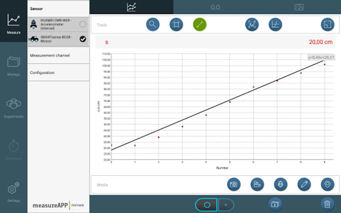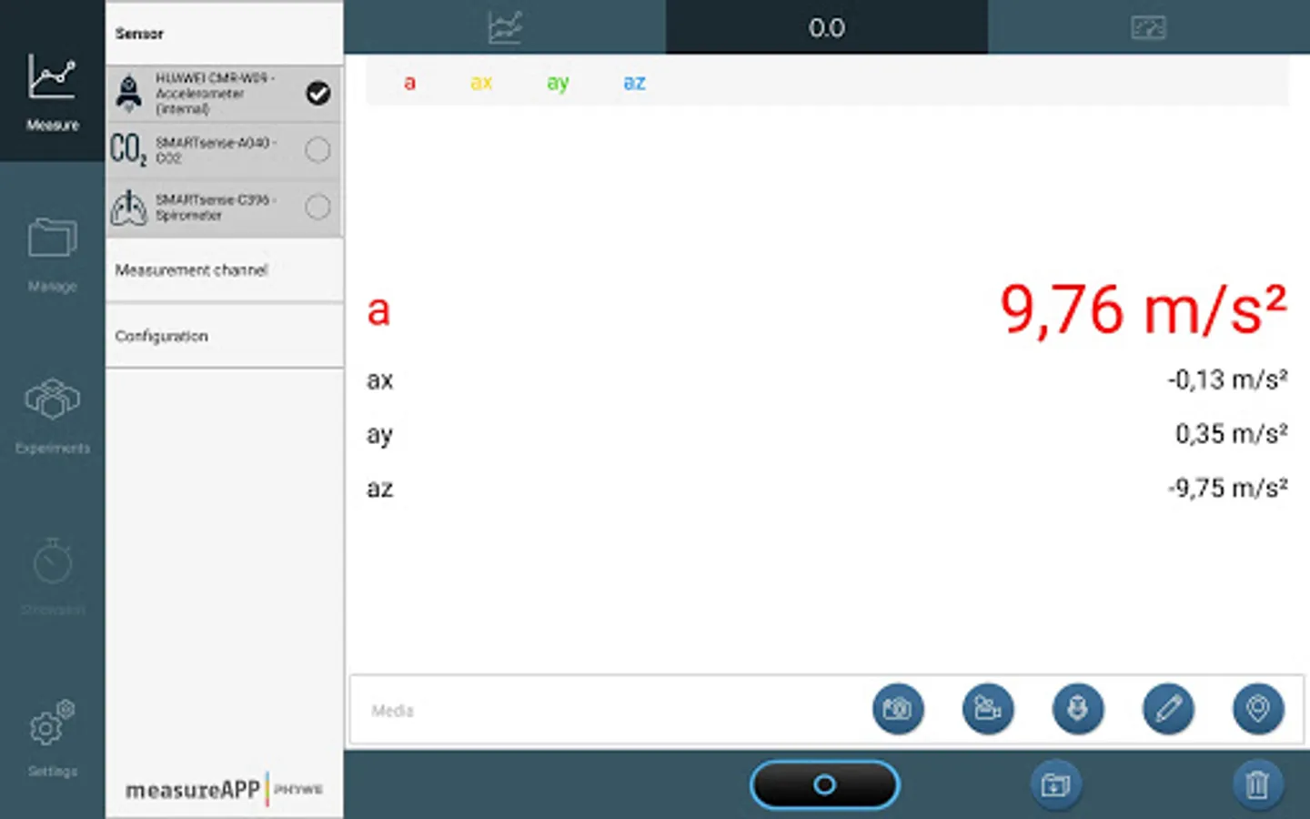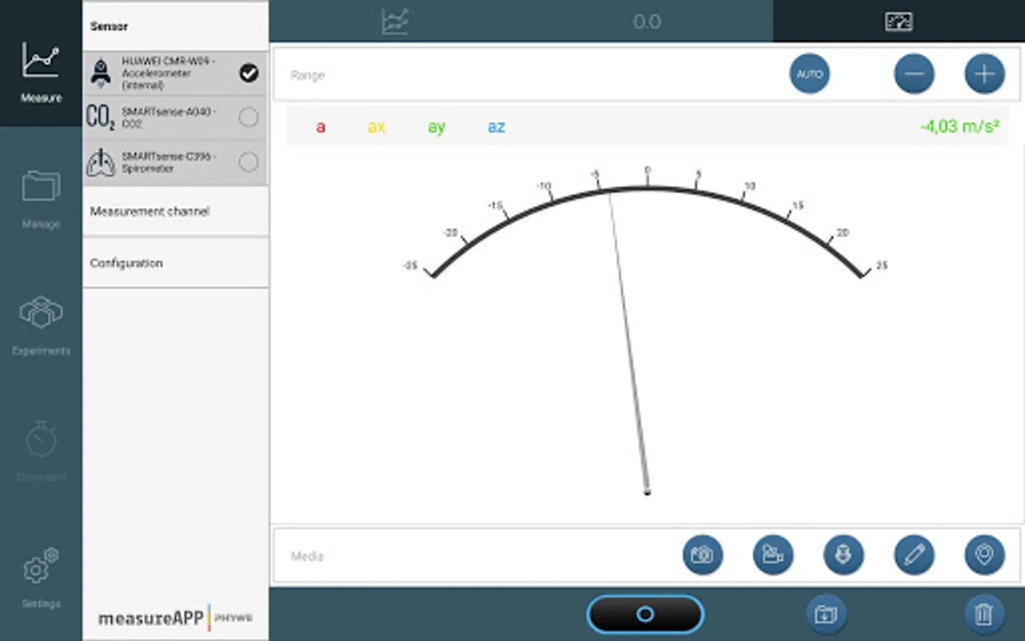 Turn your Smartphone or Tablet into a measurement device: What is the noise level in the classroom, how do weather parameters change during a day, how much electric power can you generate by turning a generator? These and many more experiments can be performed by measuring more than 50 parameters with the PHYWE Cobra SMARTsense and Cobra4 wireless data logging systems (for more information please visit our website).