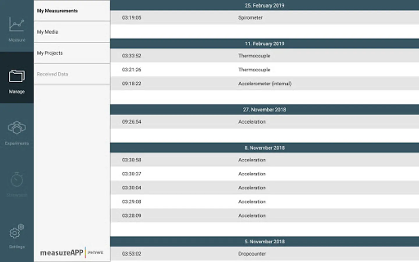 - Take pictures, capture videos, write text, record audio files or save your current location to remember the important parameters of your experiment and combine them to a project-folder