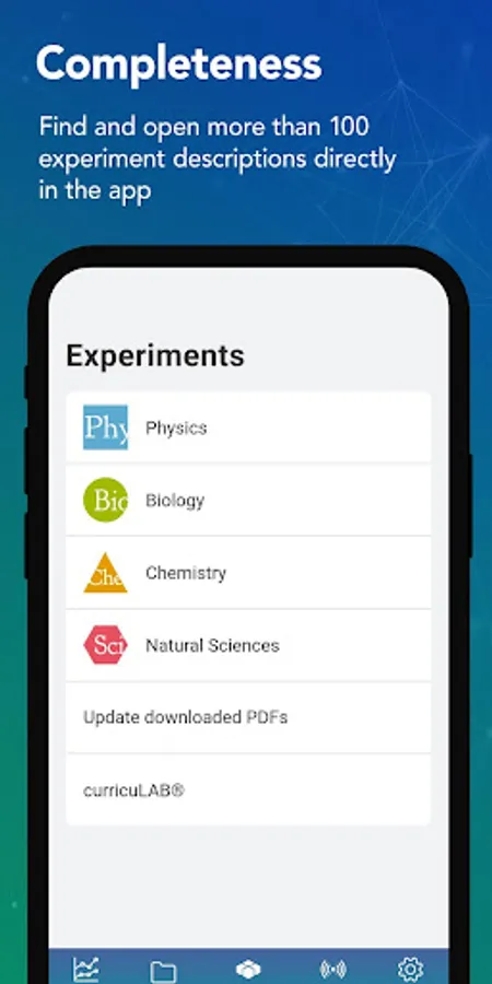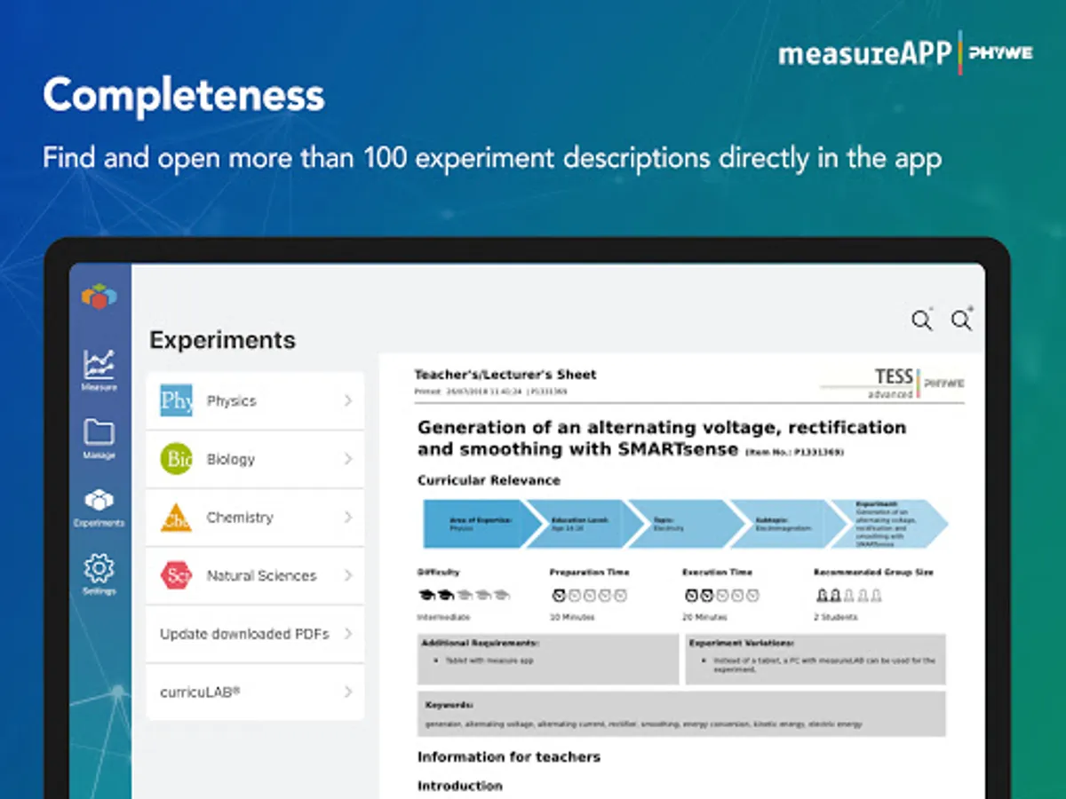 • Completeness – Find and open more than 100 experiment descriptions directly in the app
