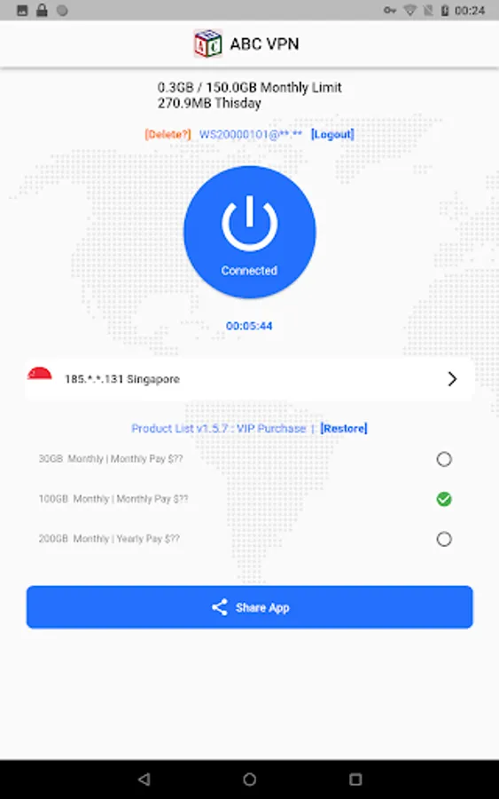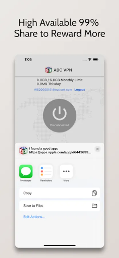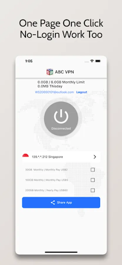 ✔ More traffic? Share app and let new one input you refer code. Both referer & referee can reward another 1GB monthly. Limit UP TO 10GB monthly.