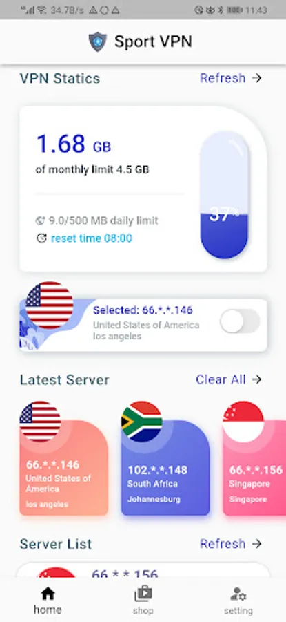 ✓ Sport VPN not only protects you with military-grade encryption, but also offers lightning-fast speeds. The UI is not good-looking, but it is useful and stable.