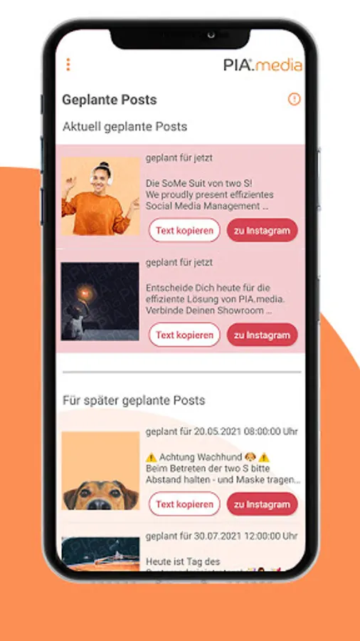 No social network is gaining relevance as quickly as Instagram. It is an indispensable marketing tool for many industries. The PIA.media app is specially designed for the publication of planned Instagram posts in order to offer you the best possible process when posting on many social media channels: