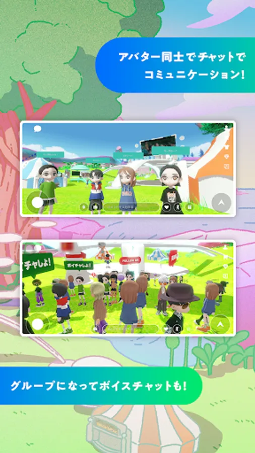 Once you have decided on your favorite coordination, let's enjoy real-time interaction between avatars by chatting! If you become a group, you can also chat by voice chat.