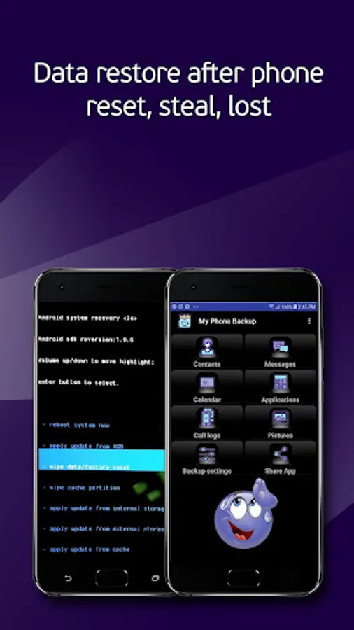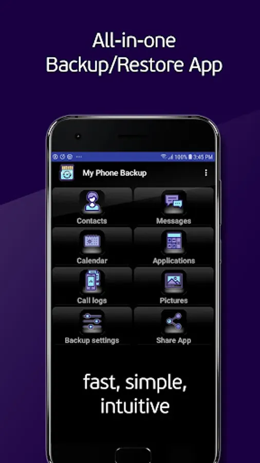 My Phone Backup is made to become your favorite backup/restore utility. It has stable work and thoroughly tested functionalities across different Android versions. App has elegant and beautifully looking interface (please review screenshots), as well as simple and intuitive backup and restore handling.
