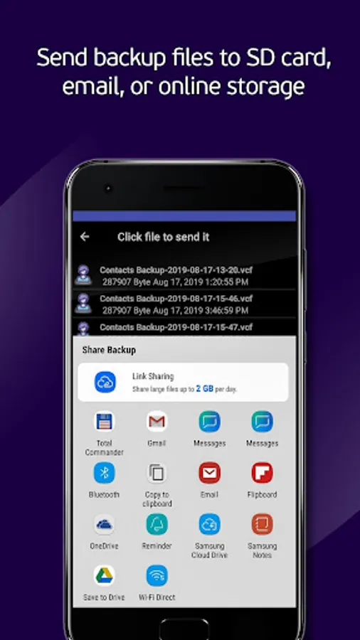 - You can send backup files from phone to email, Google drive, Dropbox or any other online storage location to your preference