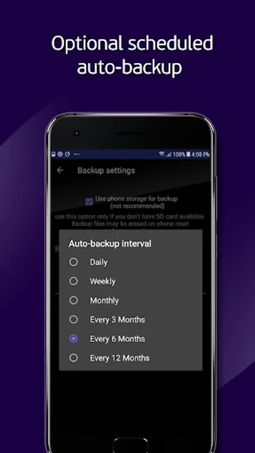 - You can schedule automatic backups of contacts, messages, call history, pictures and videos, having them secure and up to date