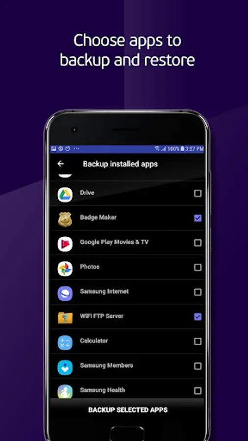 - Application installed on device. You can select applications to backup and have app version to your liking