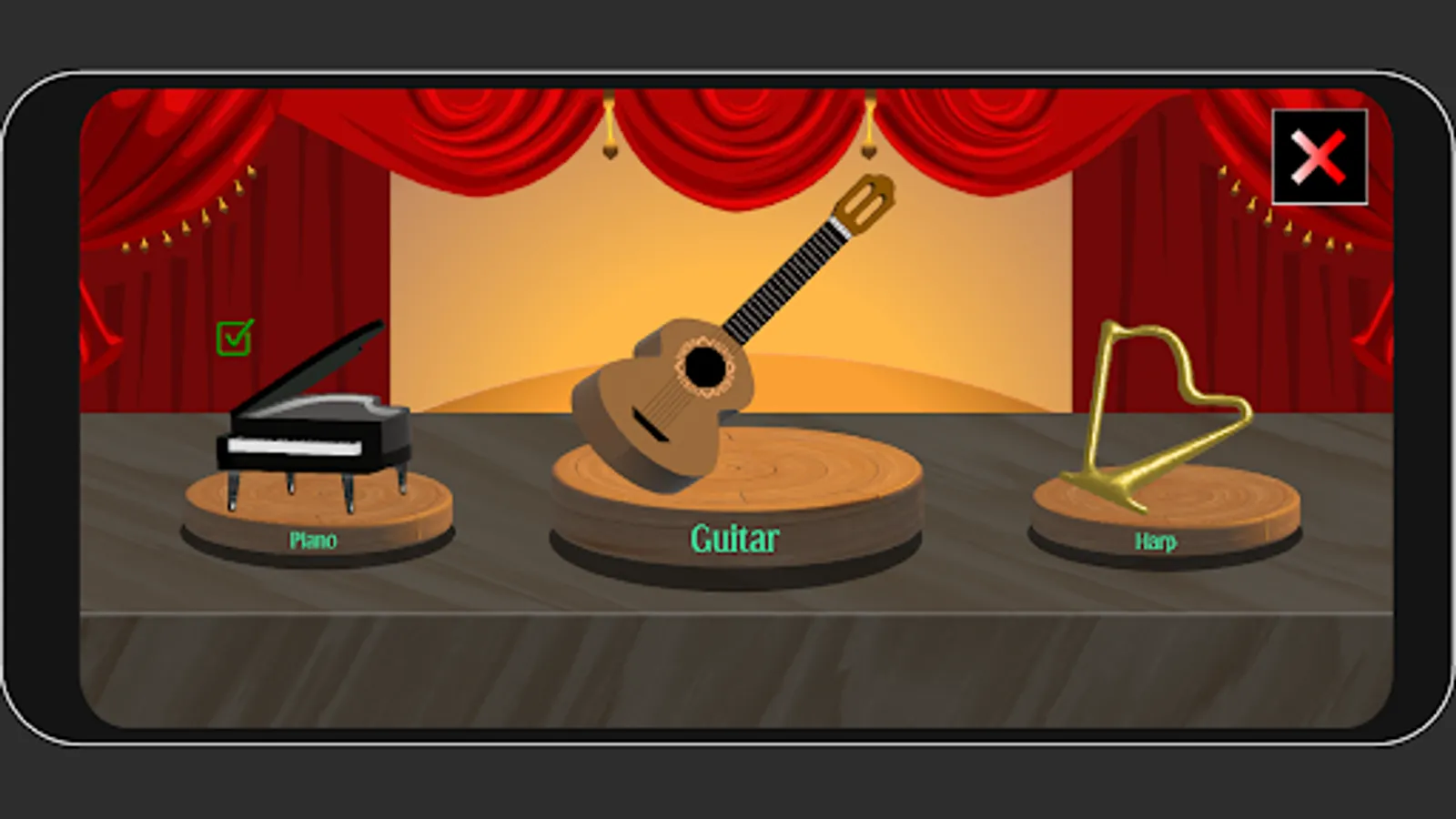 You can explore different instruments by playing piano, harp, guitar, marimba and glockenspiel.