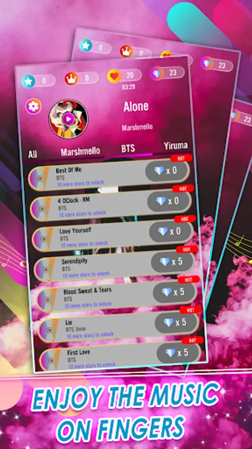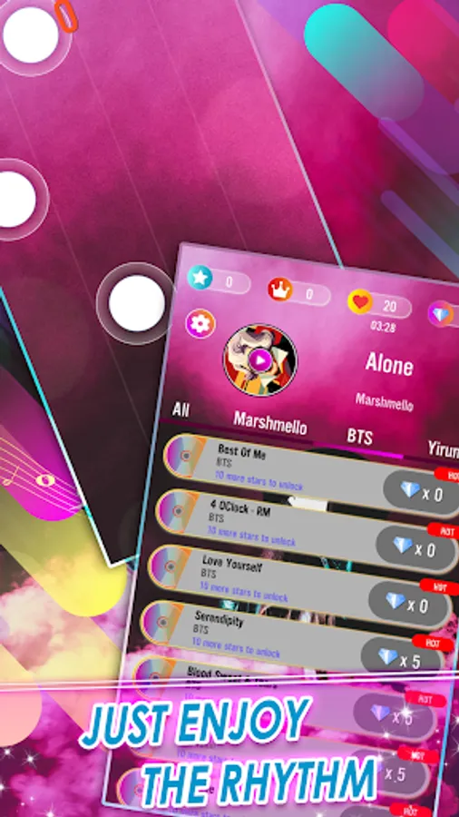 🎵The Marshmello beat and speed of the notes are interactive and controlled by your moves. So it might be easy to tap the tiles, but difficult to master!