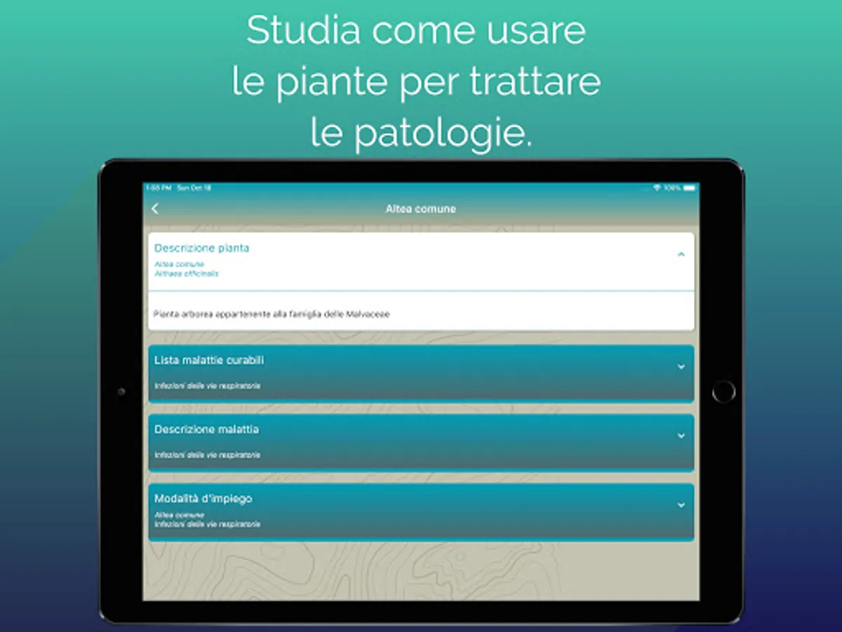 Today phytotherapy is an important alternative to traditional pharmaceuticals. Through this app you can discover and study how to use hundreds of plants for the treatment of the most varied pathologies.