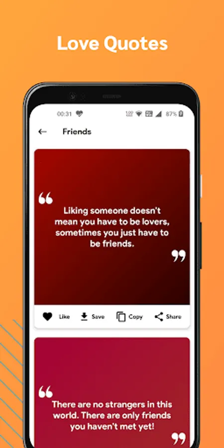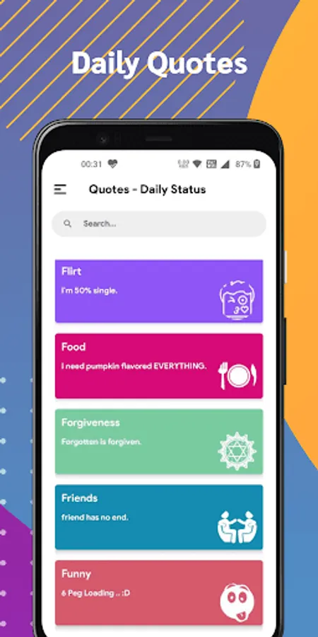 In this app you will get your quotes for any day and any mood. Easy to use app with features like daily quotes and image statuses.