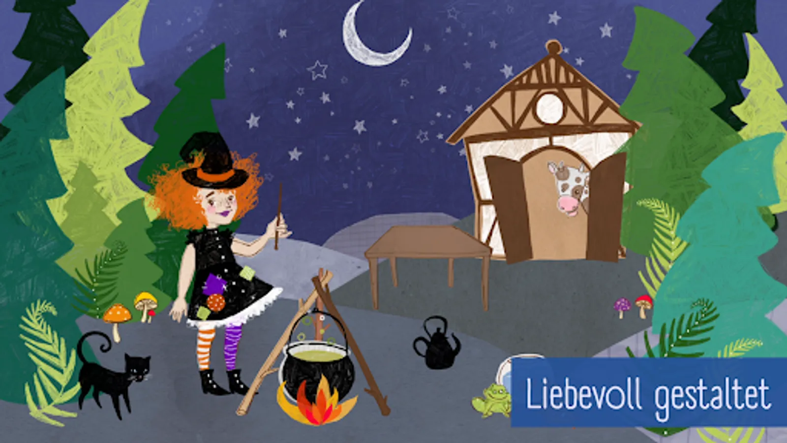 In the first learning journey, Pia introduces her home and her family. There is a lot to discover and listen to in Pia's room. With a noise machine you can listen to different noises and assign the appropriate objects to the noises. In the rhyme book, witches and dwarfs come to life with funny rhymes and what they have learned is always deepened in mini-games such as the memory or wheel game. So Pia finds a secret box at the end. What can you find in there?