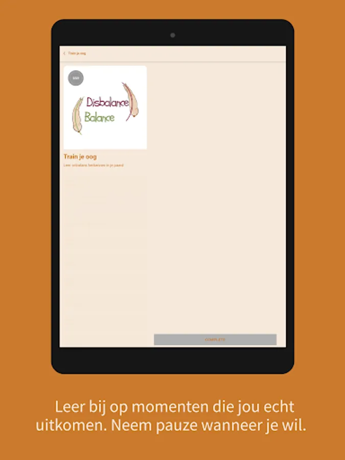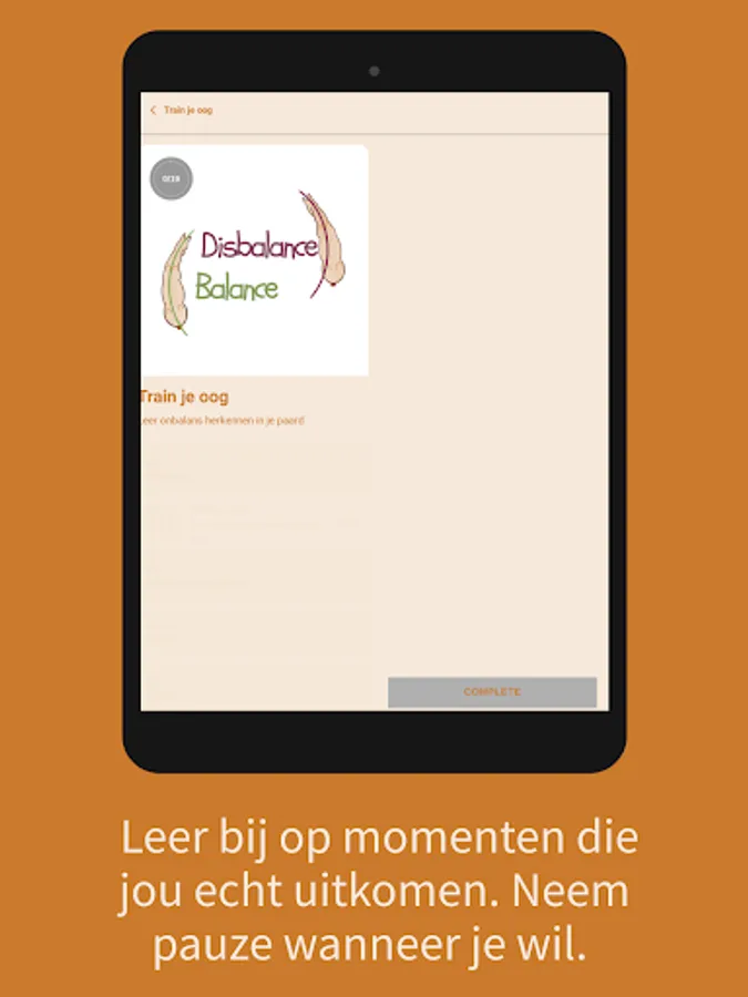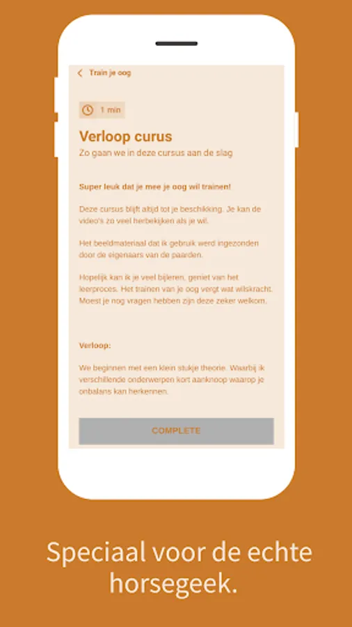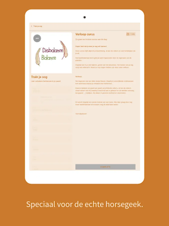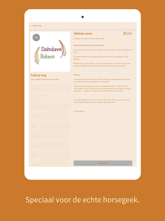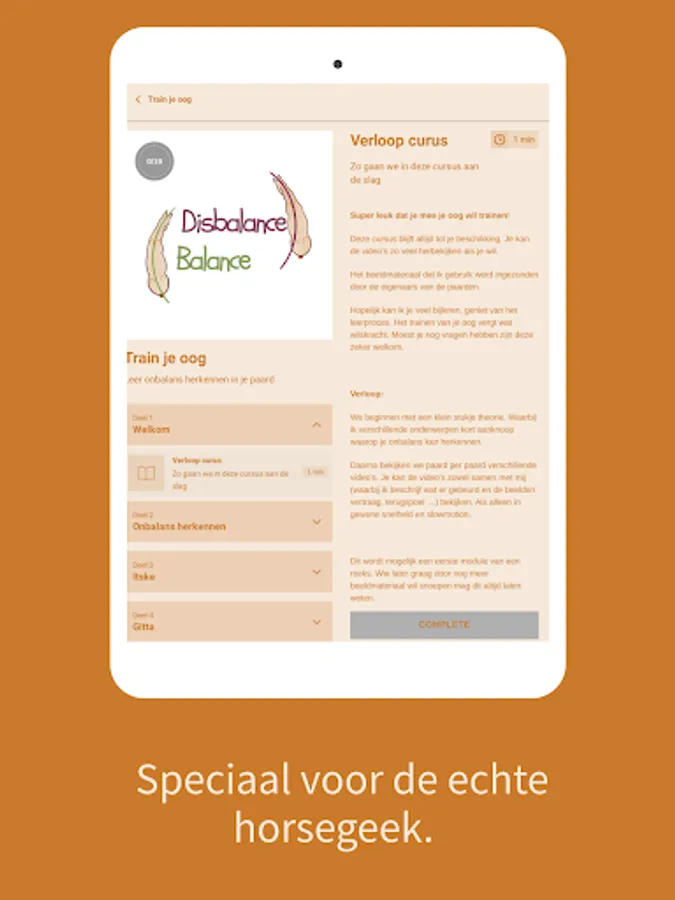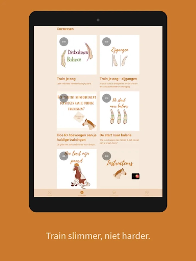 Er zijn onderwerpen zoals: 'train je oog', 'shaping', 'hoeven geven'...