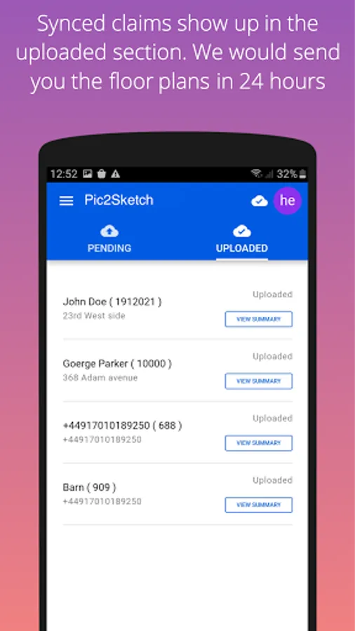 Tired of taking physical measurements for every property inspection and claim? At Pic2Sketch, we believe in making people's lives easy. With our user-friendly and seamless app, just send us the 360° images of the property from any dual-lens 360° camera and we'll get your floorplans ready in ESX format within 24 hours. No time consuming physical measurements, no follow-up visits needed, and no losing your inspection data when you're offline. We have your back while you inspect more claims even without an internet connection.