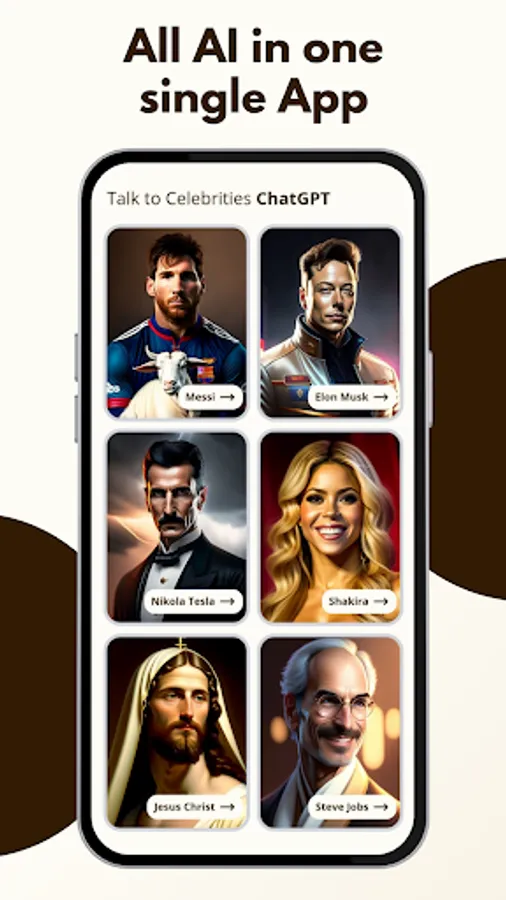 Chat with your favorite celebrities using ChatGPT in seconds, with realistic and interactive responses. Let your imagination soar and ask whatever you want. We make the impossible possible with AI!