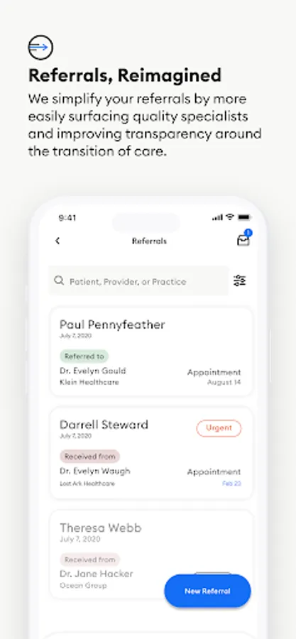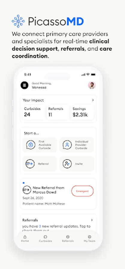 • Send referrals through the app and coordinate with specialists on patient care