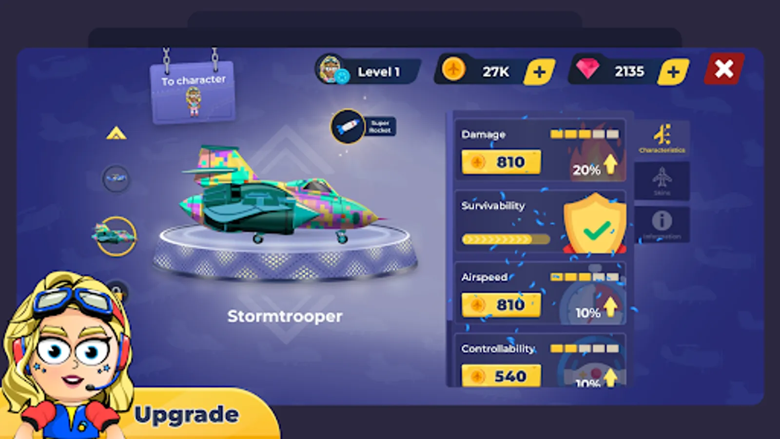 Earn coins in battle, collect rewards and buy new planes, characters and skins!πΈ Make your plane and character original and bright!π§©