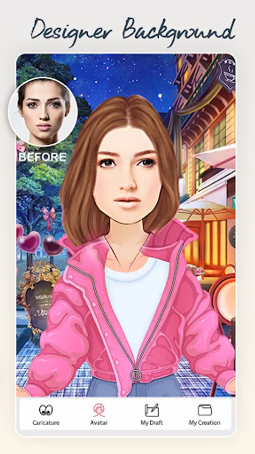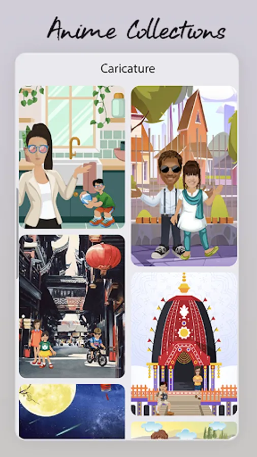 The app provides a selection of beautiful backgrounds, stickers, and text options to help you create a personalized and unique caricature poster.
