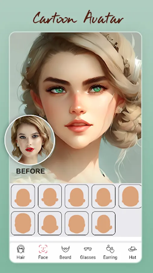 In addition to changing the face of the character, the app also allows you to create your own avatar face using a variety of customization options.