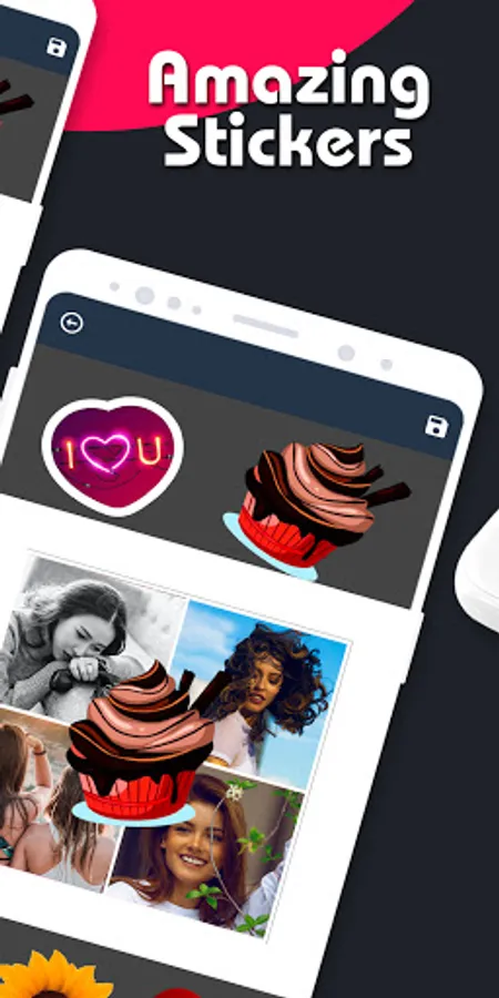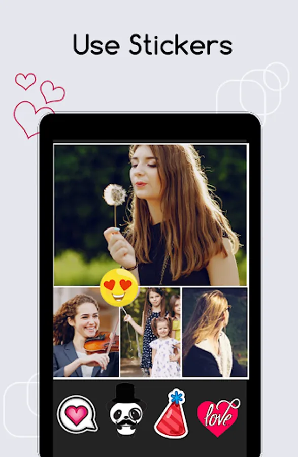• Use Photo collage editor for editing photos, adding filters and effects, stickers or resizing and adjusting image position
